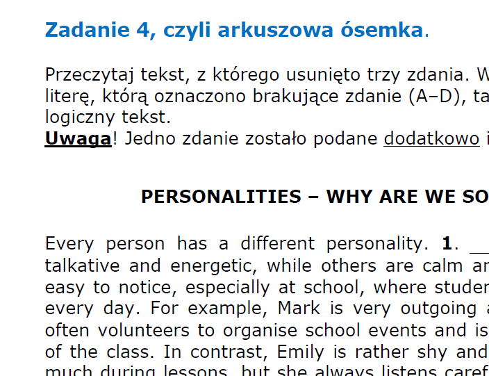 A LA ARKUSZOWO EGZAMIN ÓSMOKLASISTY
