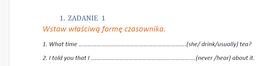 Wstaw właściwą formę czasownika-100 zdań.