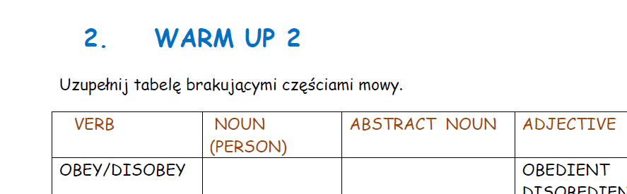 -uzupełnianie tekstu (przekształcanie wyrazu już podanego)